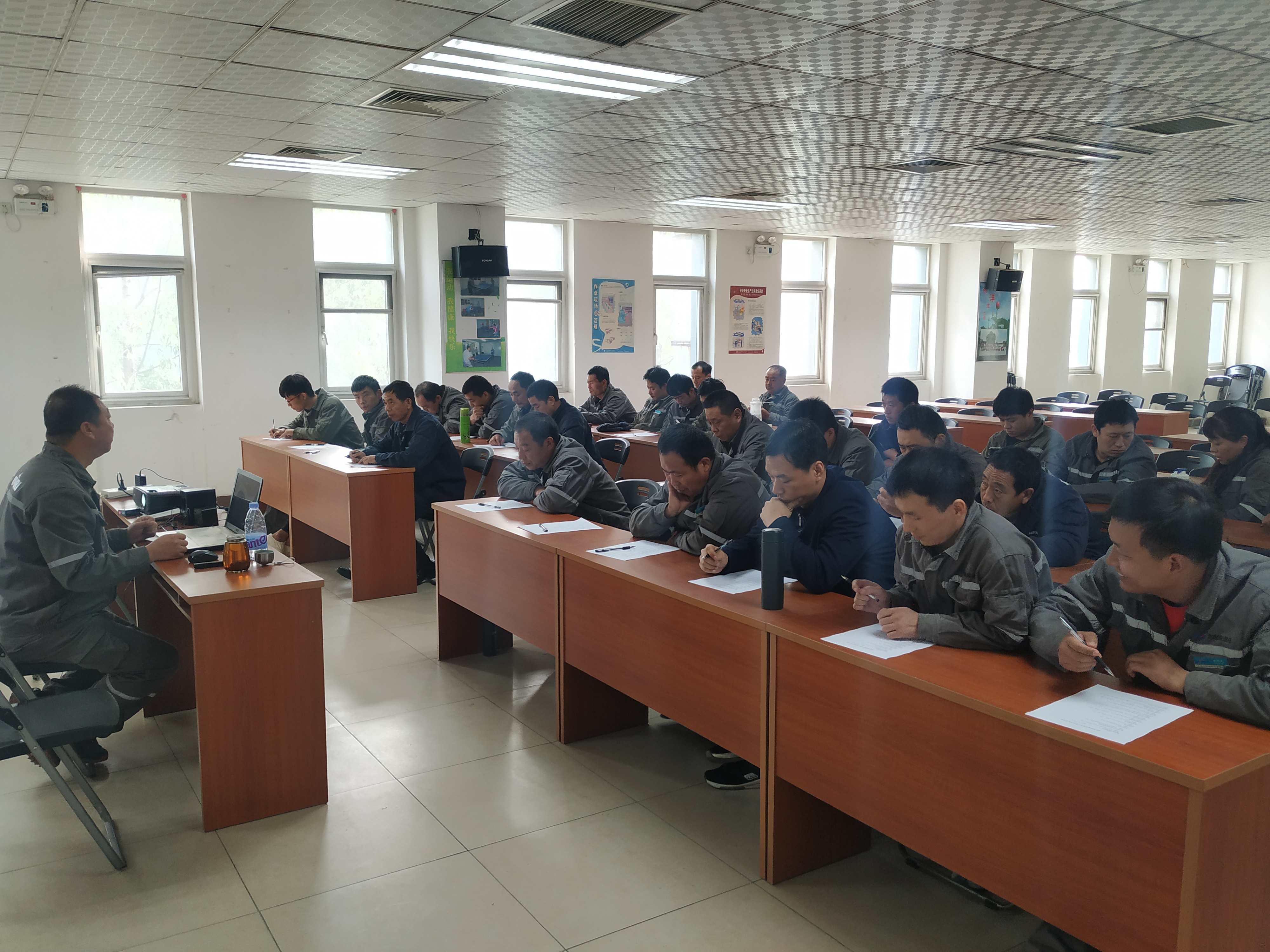 第三天,讲授职业健康与防护。用实例灌输员工高高兴兴上班、平平安安回家、健健康康退休,不要工作时拿命挣钱,退休后拿钱买命的思想。同时还围绕职业道德进行了互动,点明了“思想决定态度,态度决定一切!”的工作态度,并践行“主动、敬业、勤奋、忠诚、责任、服从、原则和自信”的职业精神。