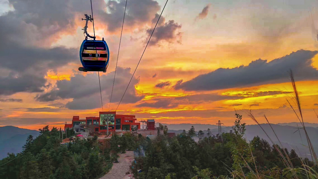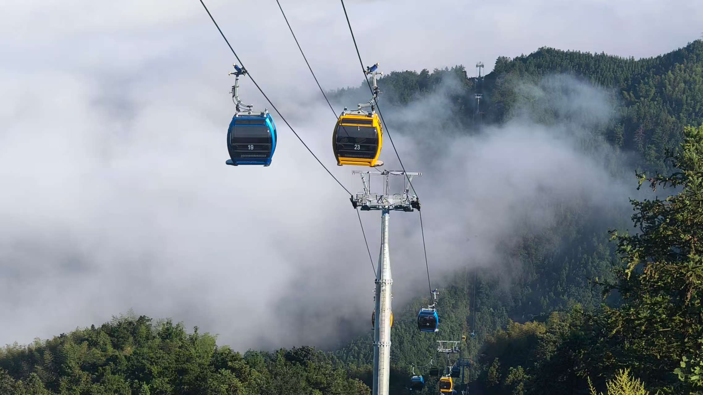 该索道高差1158.5米,设有中间转角站,夹角为134.696°。全线设立51座支架,配备114个八人吊厢。最高运行速度达每秒6米,单向运量最高每小时1200人。该索道采用AB两段式布局,可实现大小循环运行模式的灵活切换,满足多样化运营需求。